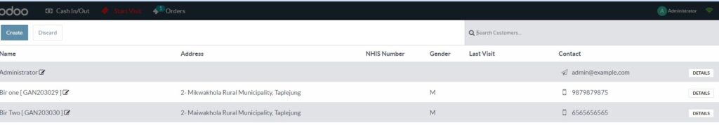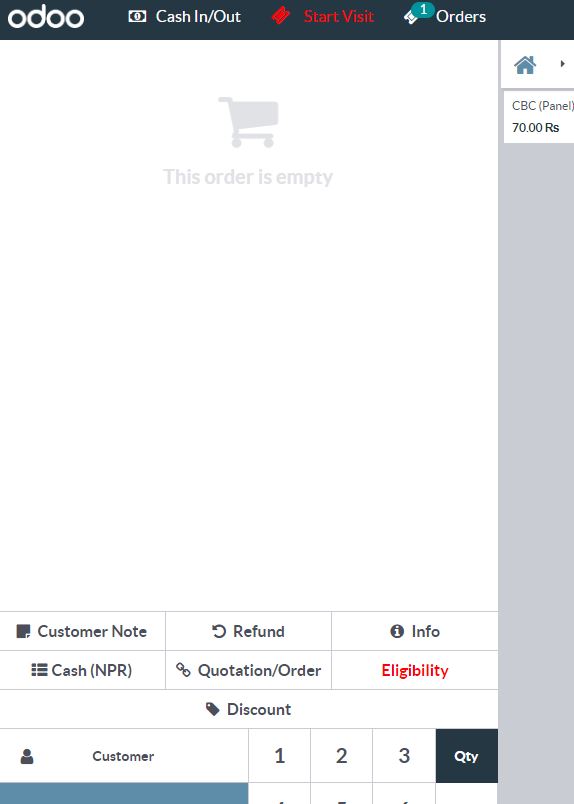 - Click on start of visit and fill the form and click on confirm, then form will select items at cart list appear at left top.